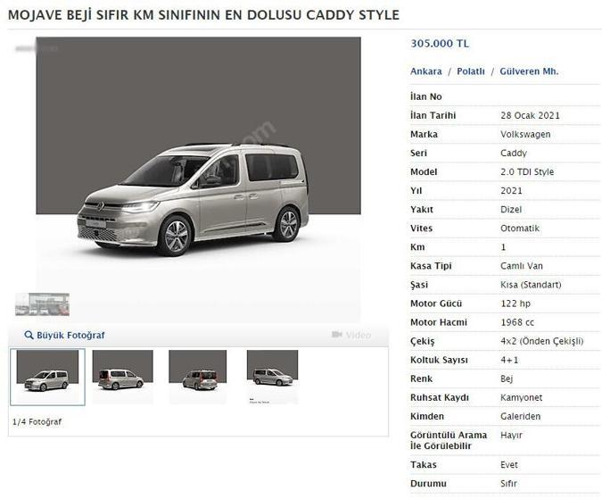 2020 volkswagen caddy fiyati ve