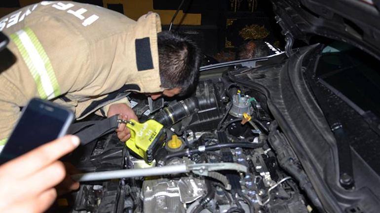 arabanin motoruna giren kediyi itfaiye kurtardi