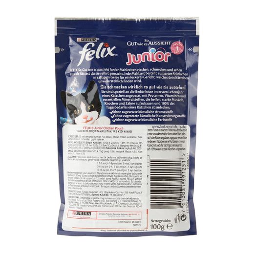 felix junior tavuk etli pouch yavru kedi mamasi 100 grx20 adet