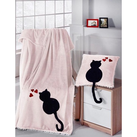 kedi figurlu throw battaniye seti sal televizyon battaniyesi