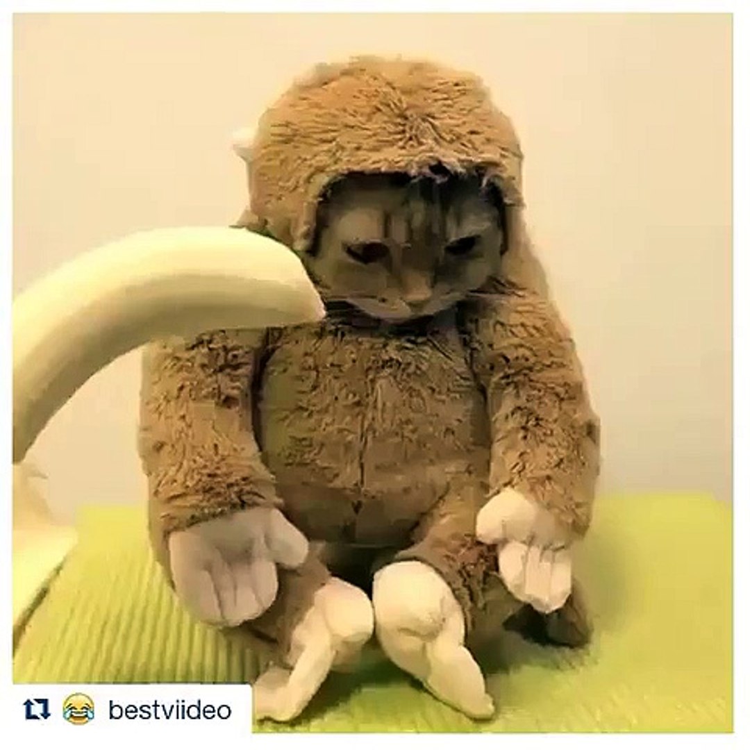monkey cat muz yiyen maymun kedi