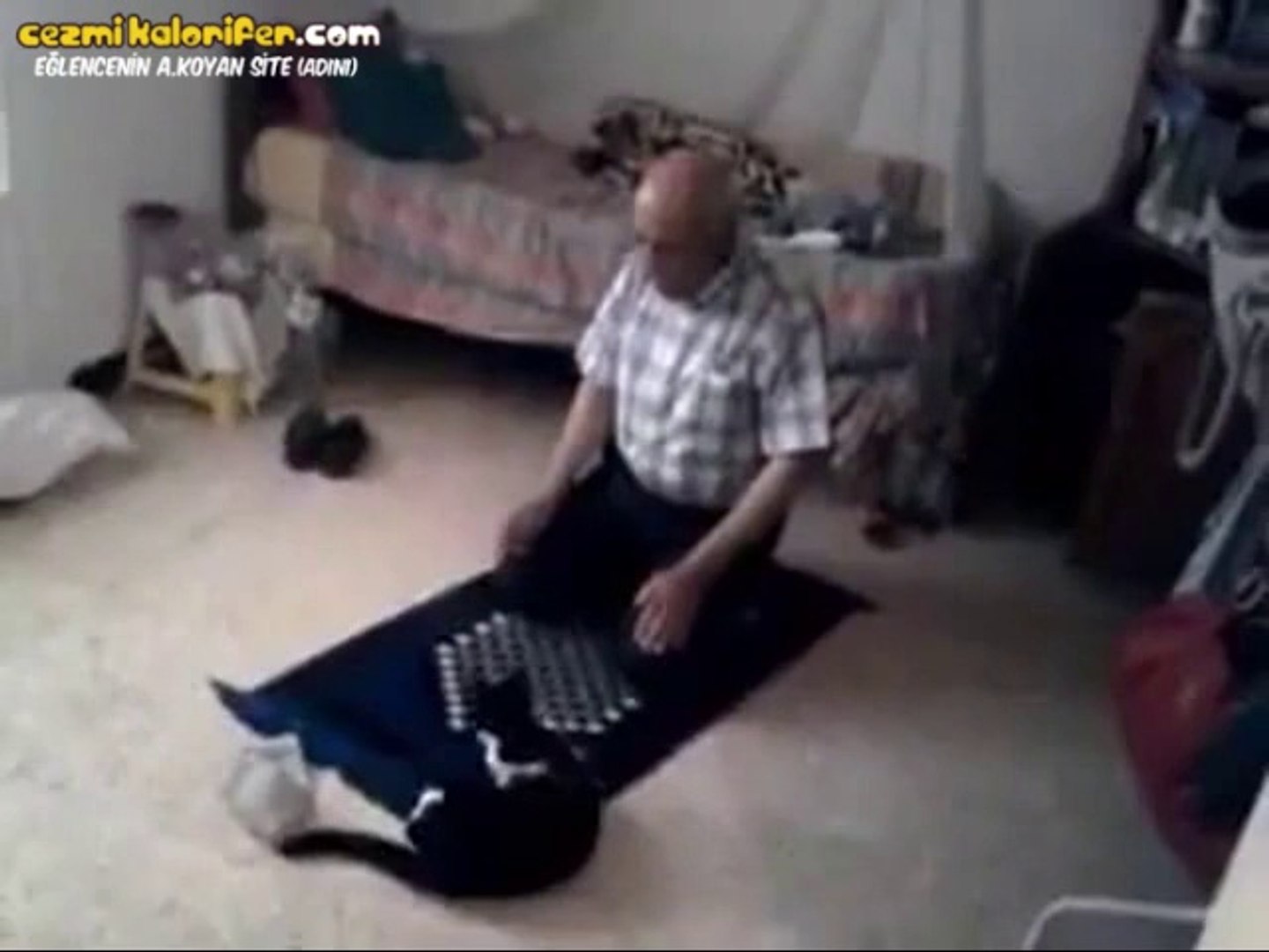 bir kedinin namaz kilan adamla oyun oynamasi
